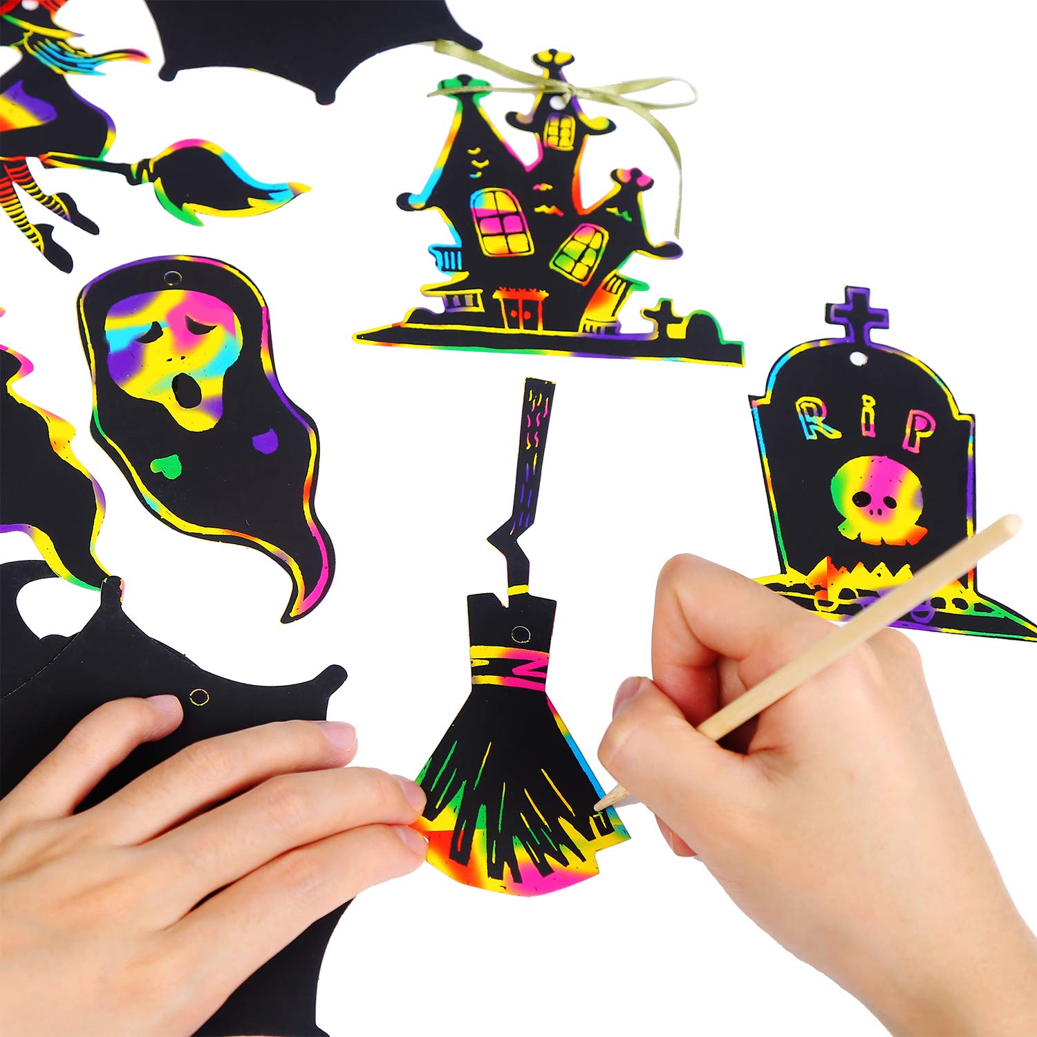 Amazon Com Diyasy Halloween Scratch Paper 80 Pcs 20 Design Magic Rainbow Scratch Off Art Cards For Kids Halloween Craft With 20 Sticks And Ribbon Arts Crafts Sewing
