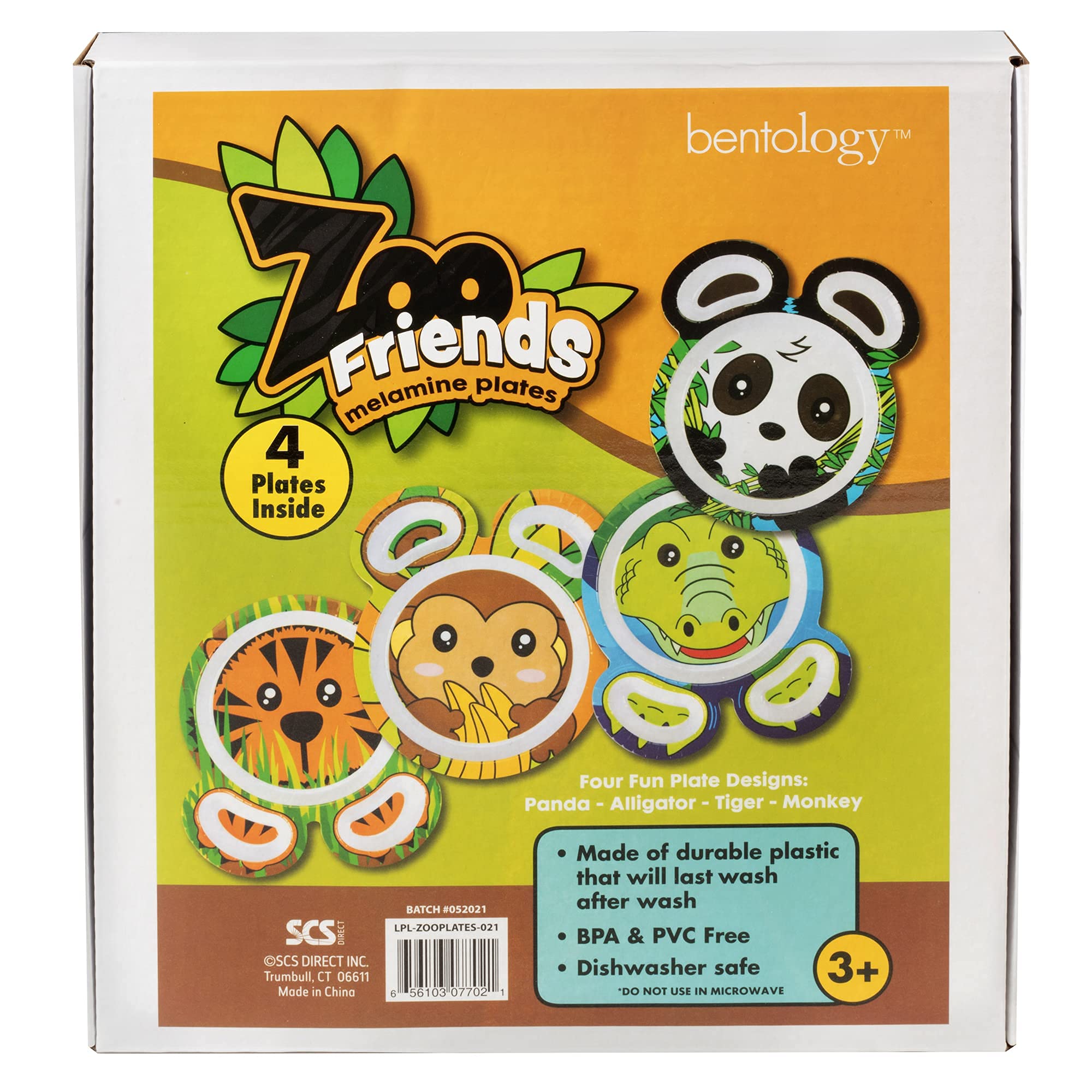 Amazon Com Zoo Friends Mealtime Melamine Feeding Plates Set Of 4 Different Cute Animal Pal Dishes For Kids Panda Alligator Tiger Monkey Divided Compartments Bpa Free Dishwasher Safe Baby